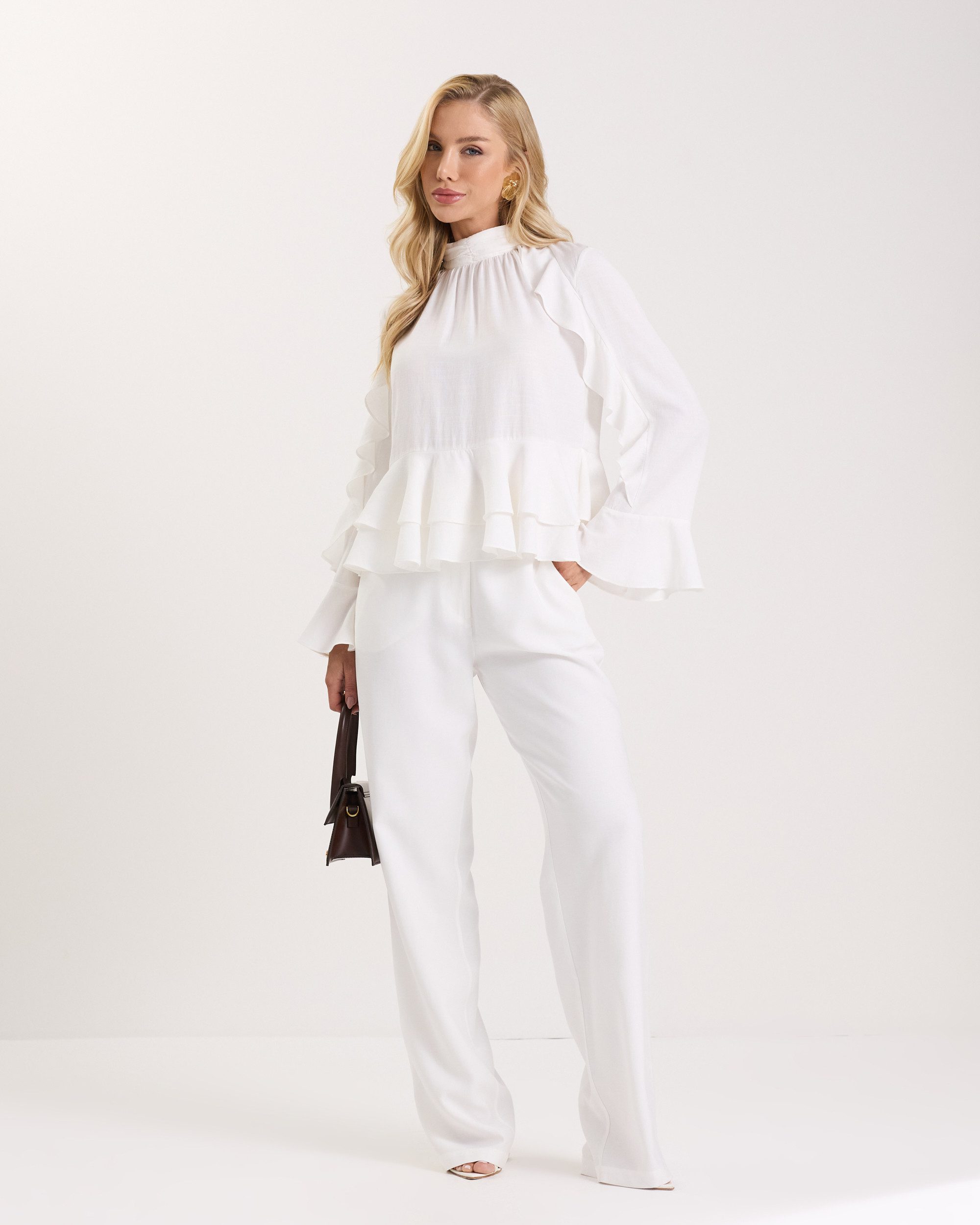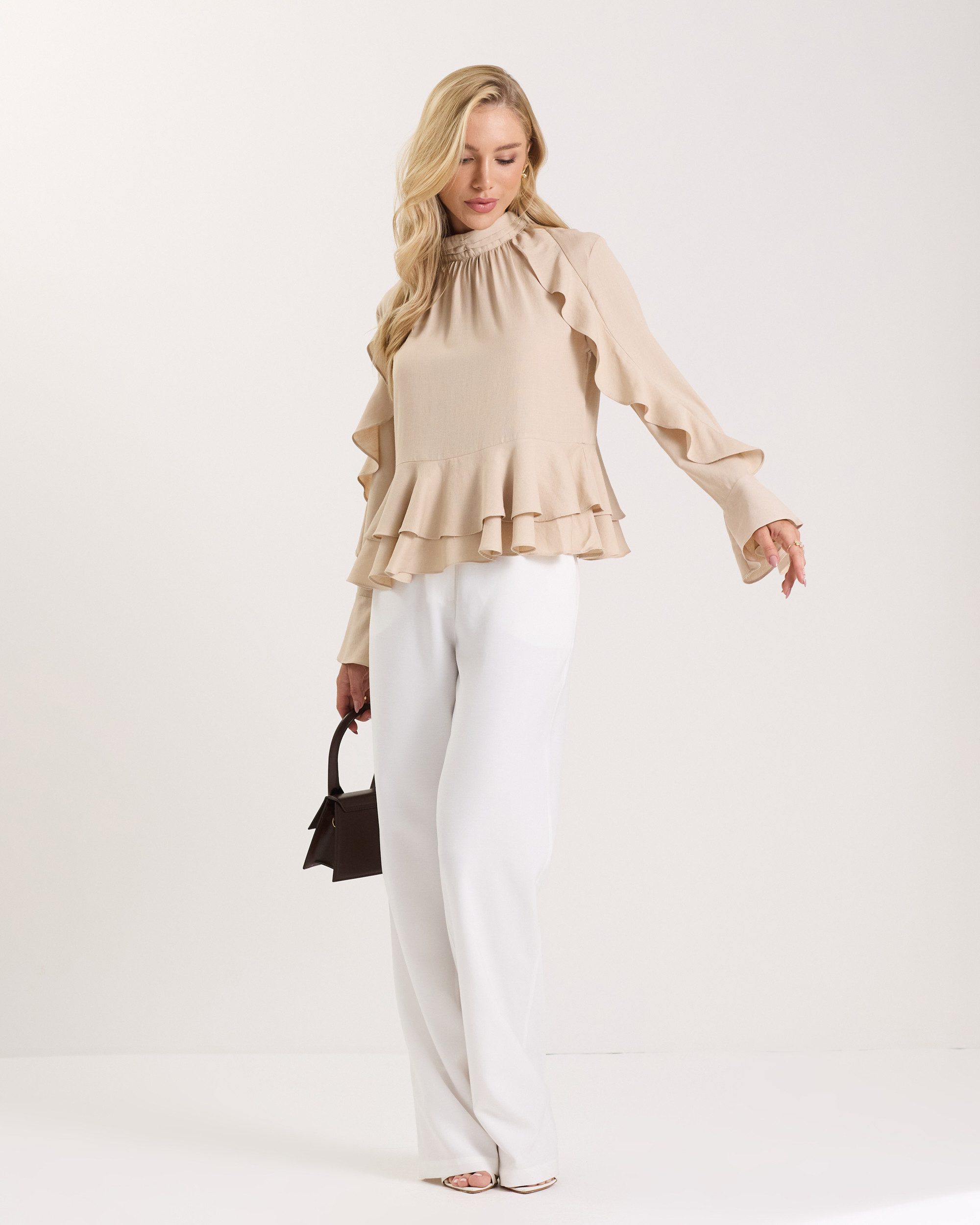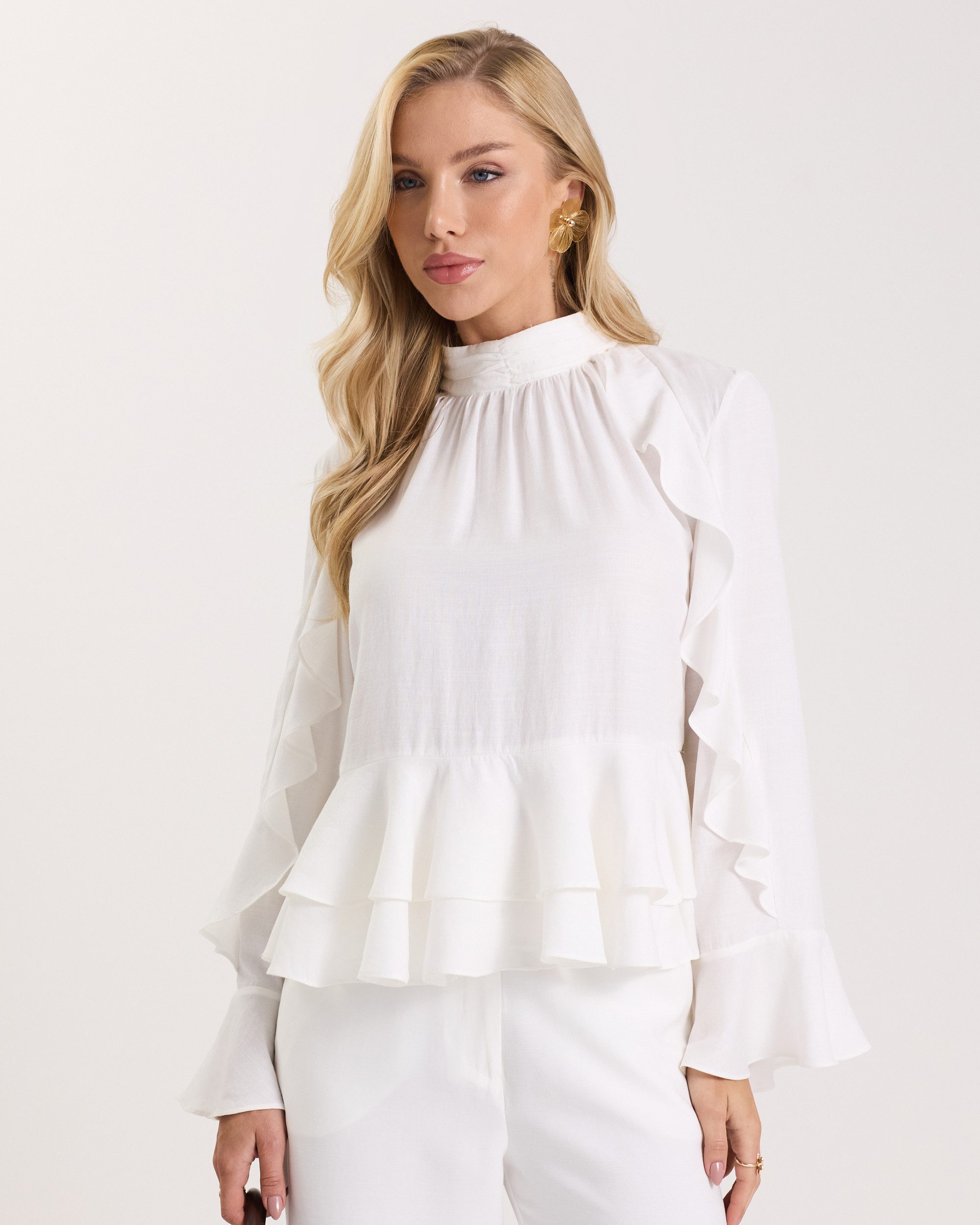Blusa Jordina com Babados e Manga Longa – Delicadeza e Sofisticação
