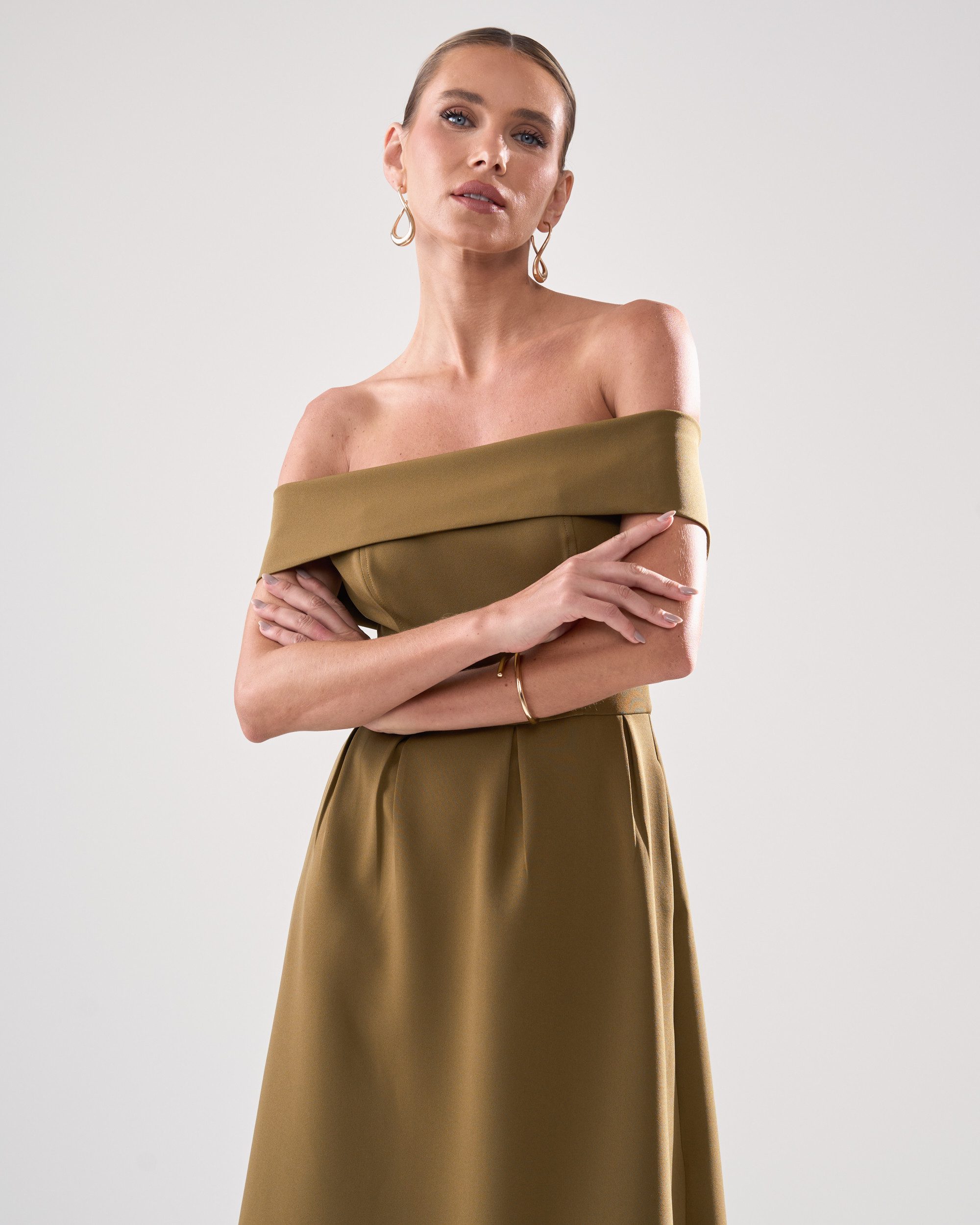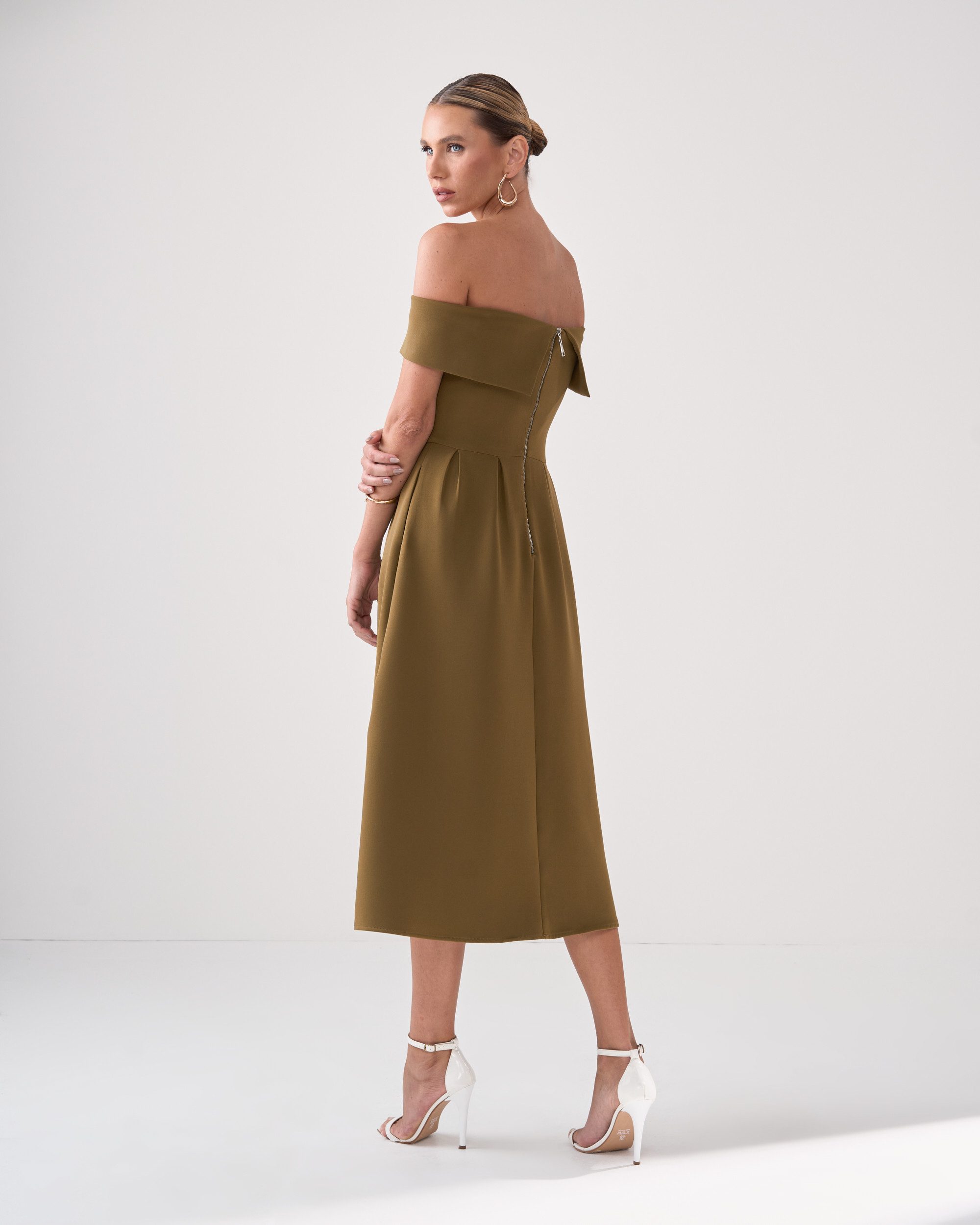 Vestido Midi de Alfaiataria Ombro a Ombro Camile – FIN208